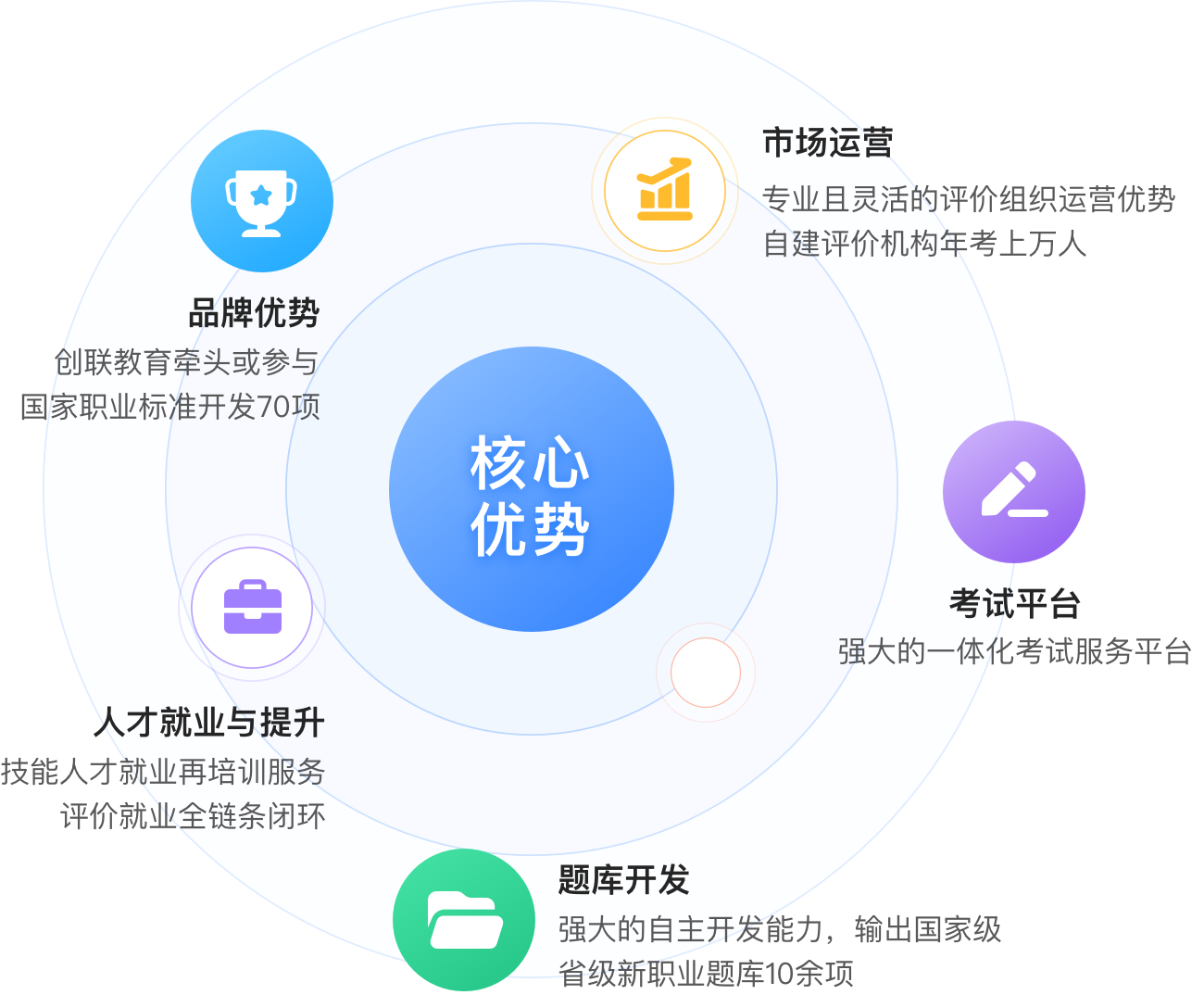 以数字技术工程师培育项目为核心产品线,面向政府、事业单位、院校、企业提供大数据工程技术人员培训认证、人工智能工程技术人员培训认证、数字化管理师培训认证、生成式人工智能Agent应用培训、数据资产评估培训及AI+职业培训产品